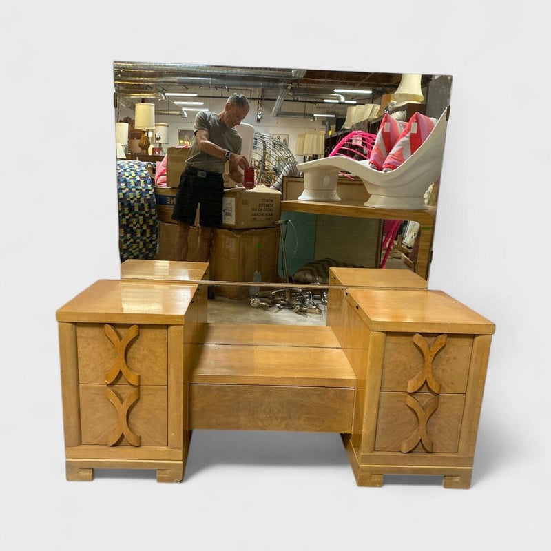 Light Finish Art Deco MCM Style Vanity w/Mirror
