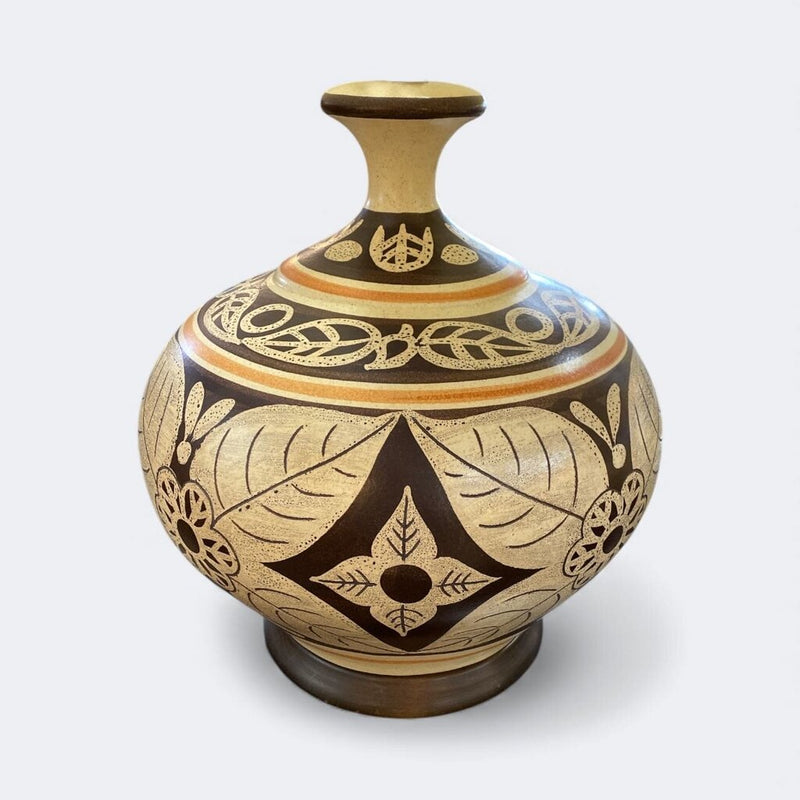 PAIR Mid Century Modern Beige, Brown and Gold Ceramic Lamps (Set of 2)