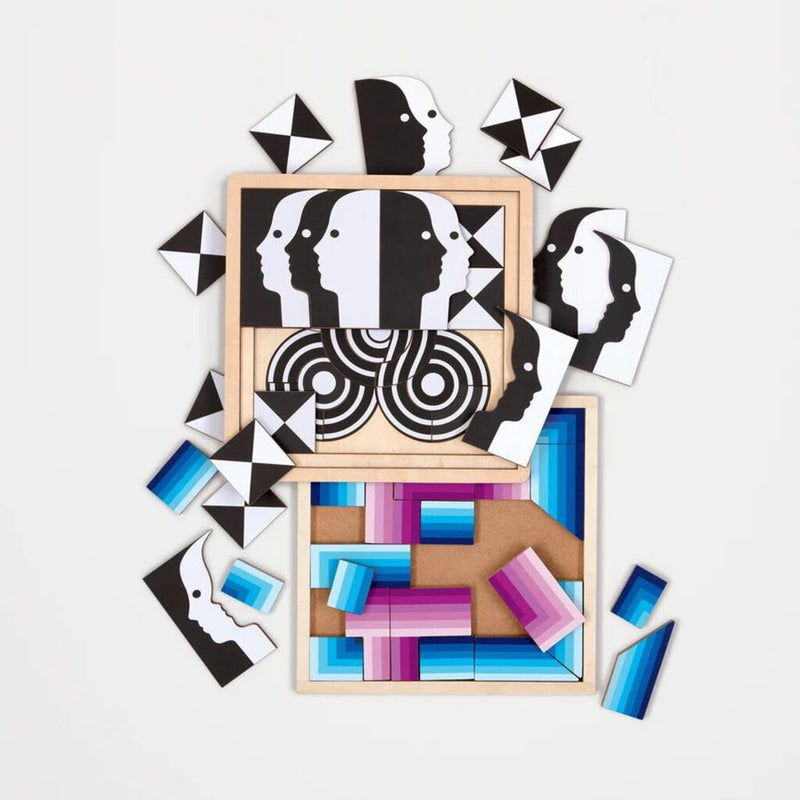 Take game night to the next next-level with designer Jonathan Adler's Atlas Layered Wood Puzzle—three layers of black and white puzzles featuring Adler's signature trippy patterns. Packaged in a chic and sturdy matte-finish box that sits stylishly on your cocktail table (and is perfect for storage or gifting).