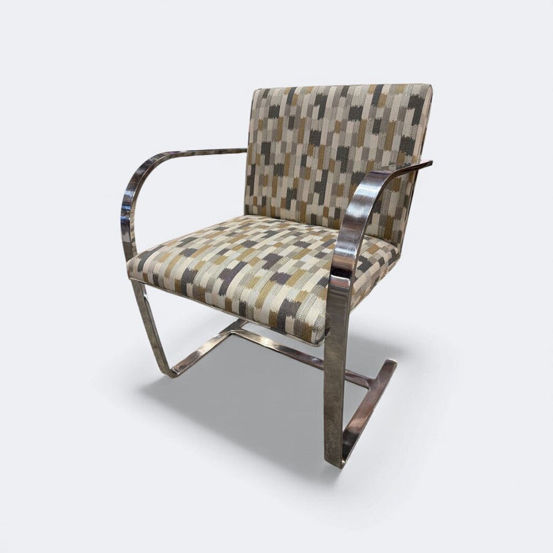 Knoll (STAINLESS) Mid Century Pair of Ludwig Mies van der Rohe BRNO Cantilever Flat Bar Arm Chairs - New Knoll Upholstery (Set of 2)