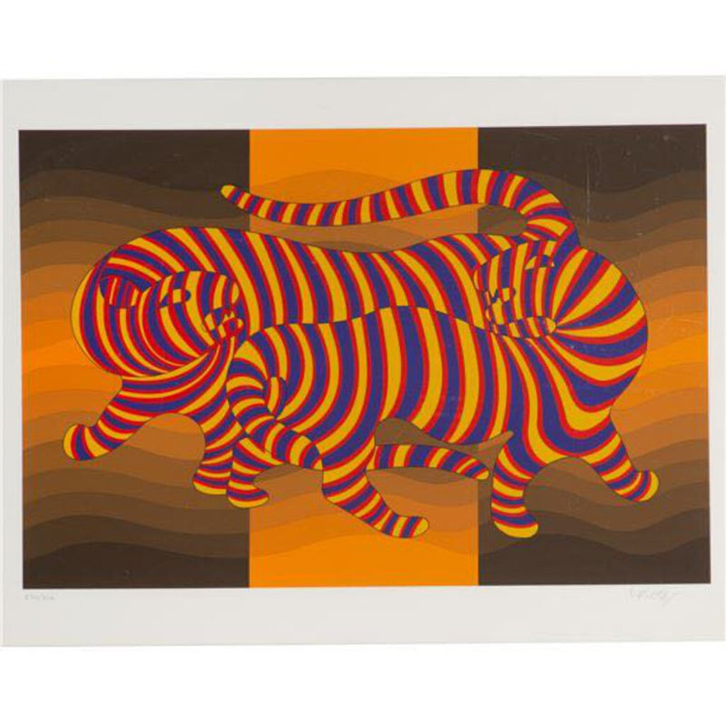 Victor Vasarely "Two Tigers"Orange in Acrylic Frame 170/250 signed Serigraph on Paper