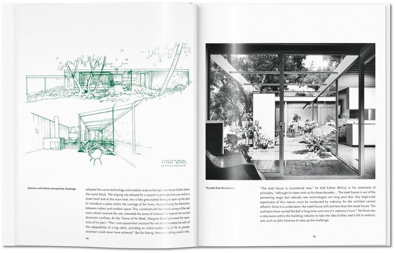 While still a student of architecture, Koenig designed and built his first exposed steel house in 1950, proving that the use of prefabricated materials could allow for spatial freedom in affordable houses. Throughout his career, he would champion socially responsible design, as well as buildings that responded deftly and directly to the Southern California climate. Through windows, water, terraces, skylights, and glazing, his buildings optimized the rapport between inside and outside, while aiming for a simplistic purity of appearance.
