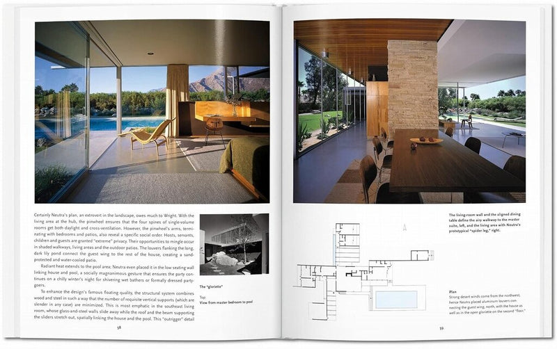 In the architecture of Richard Neutra (1892–1970), inside and outside find their perfect modernist harmony. As the Californian sun glints off sleek building surfaces, vast glass panel walls allow panoramic views over mountains, gardens, palm trees, and pools.