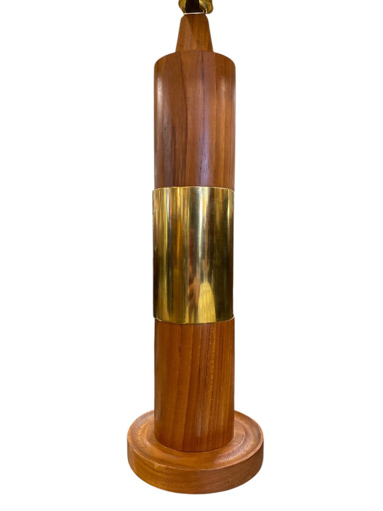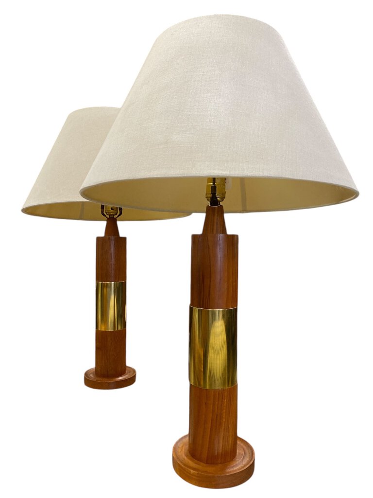 Mid Century Pair of Teak and Brass Table Lamps (Set of 2)