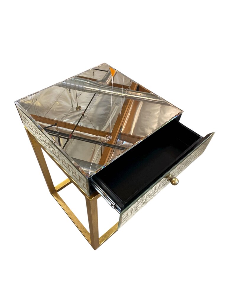 Pair of Mirrored Gold Greek Key Nightstands (Set of 2)